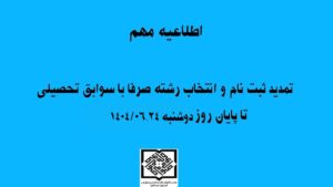 تمدید ثبت نام و انتخاب رشته صرفا با سوابق تحصیلی تا پایان روز دوشنبه 1404/06/24
